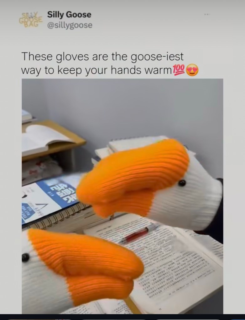 For today’s bird, belatedly for the 5th, I know it’s only an ad, but how cute are these?!? We play Untitled Goose Game and these are perfect for gentle goose terrorism.