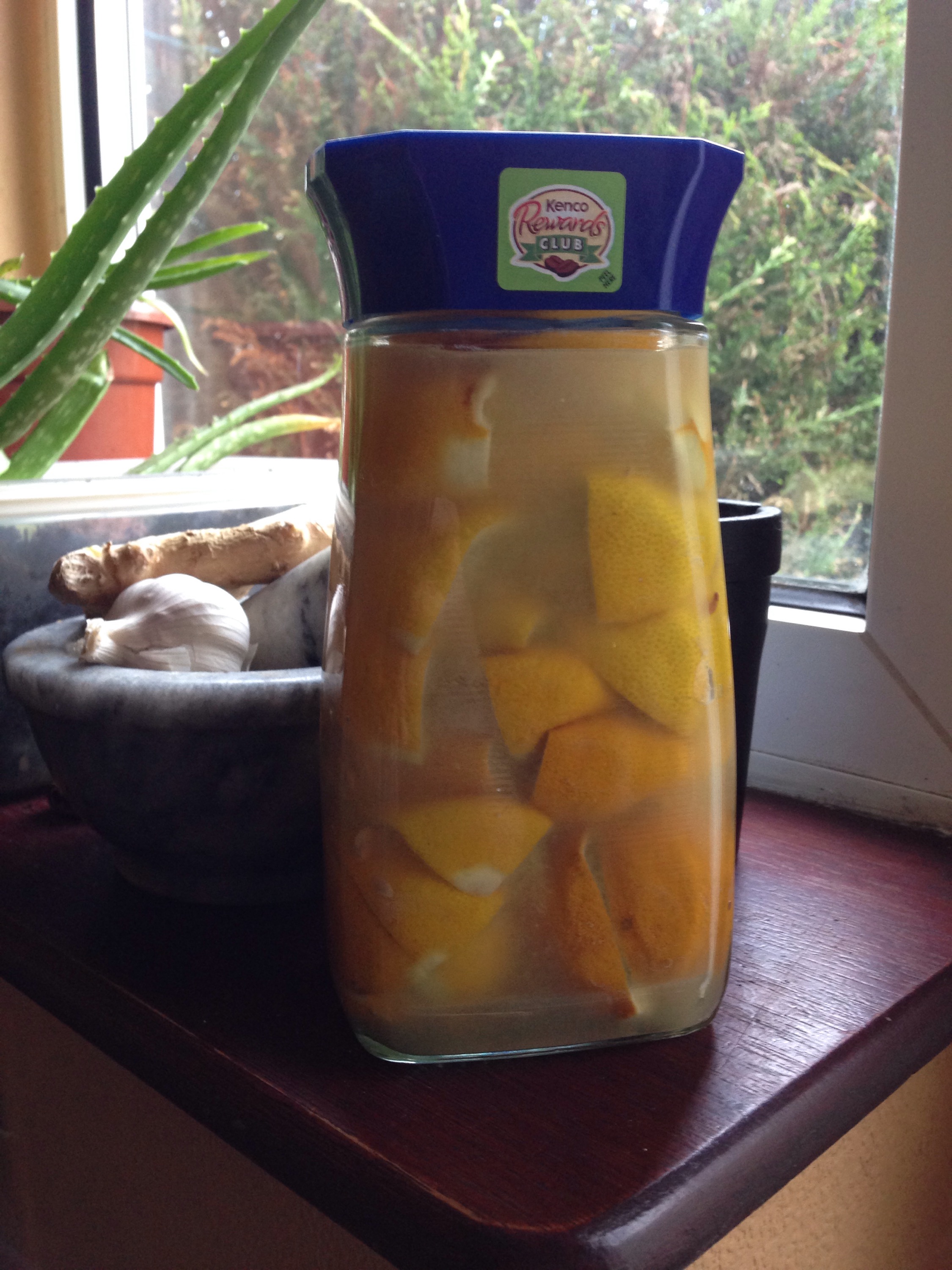 My other half bought me a gorgeous tagine for Yule, and after having taken it out for a successful maiden voyage (mutton with olives and apricots) I’ve been inspired to explore North African cooking a little more. These preserved lemons are easy and satisfying to make (you literally cram them into a jar!) but they have to be left for 3 weeks before eating. So I shall report back on the flavour. I hope I have the patience not to crack into them early!