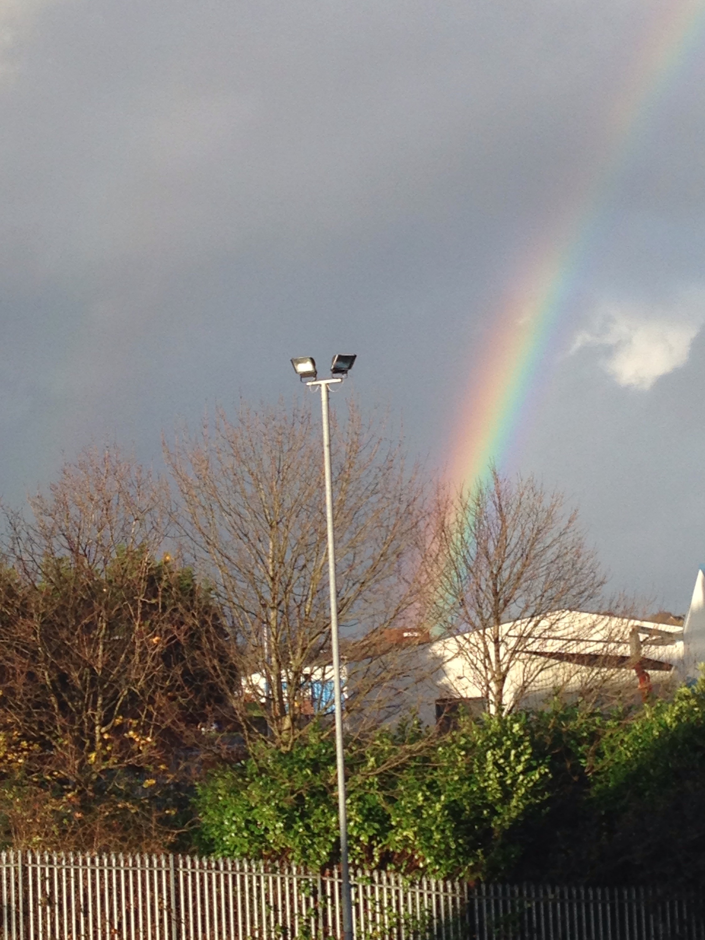 If you look to the very left of the picture, you can faintly see the ‘second’ rainbow. Jim informs me that every rainbow has a double, and the colours are reversed. So although it follows the same curve as the primary rainbow, the outer colour is purple/violet and the inner colour is red.