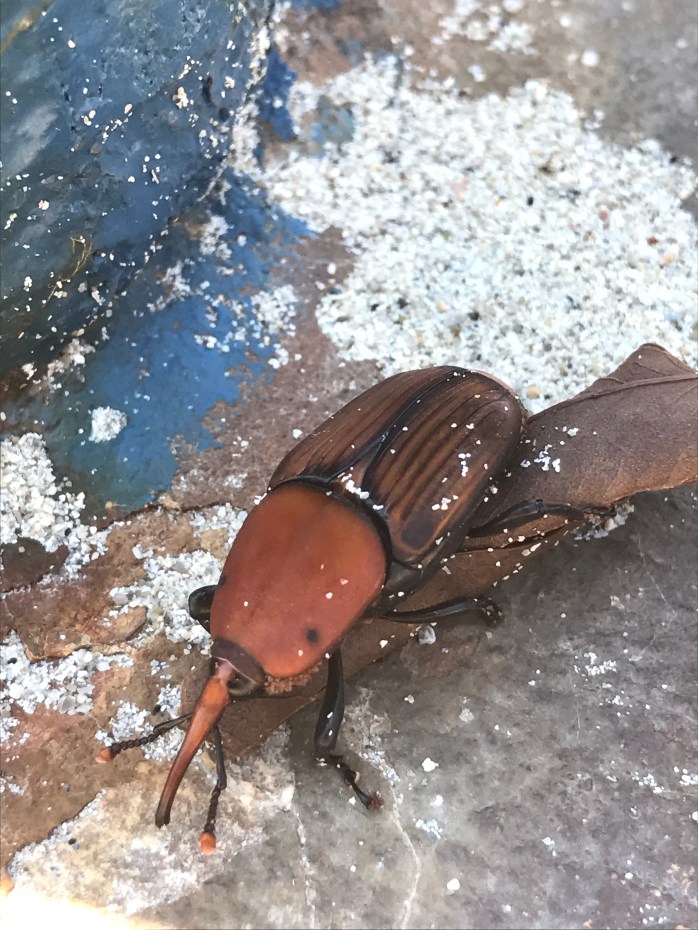 Sadly, these beautiful insects are seen as pests as their grubs destroy palm trees from the inside out. I love palm trees too, so I understand why the weevils are not popular, but I can’t help feeling the weevil has a right to life too…