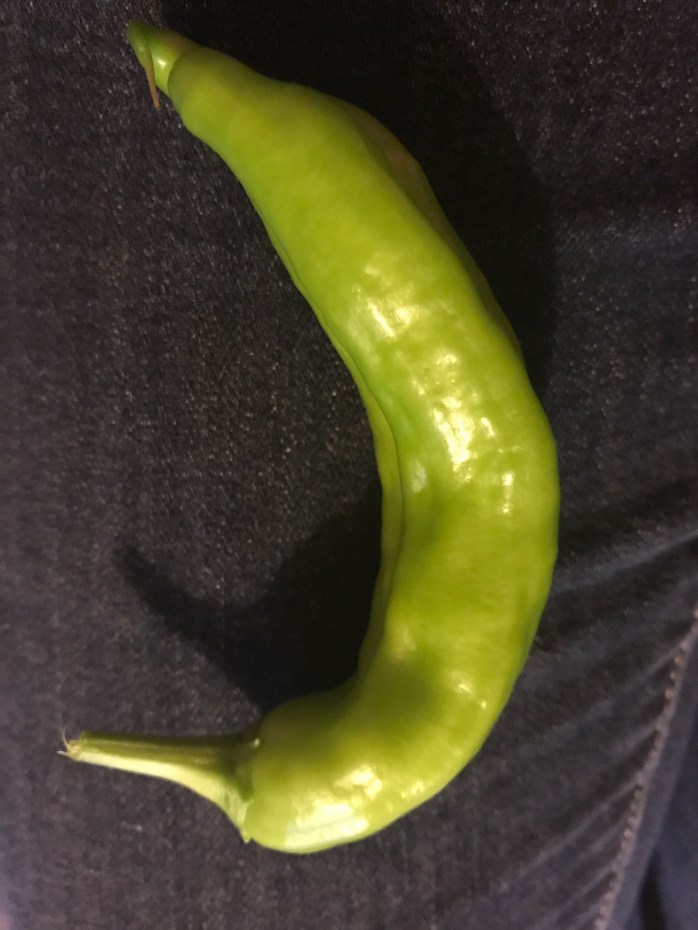 Meet Big Jim the chilli! That’s the actual name of this variety. I haven’t tried the peppers yet as this is the first. They smell sweet as opposed to fiery, but taste will tell!