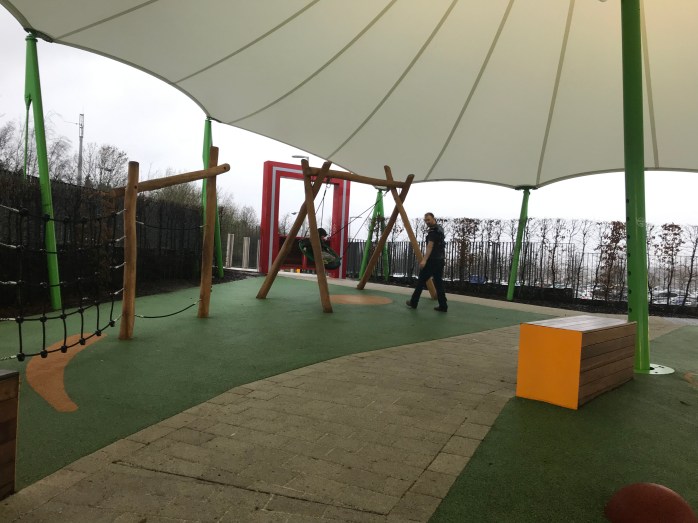 An outdoor, under cover play area so bored kids can unwind from shopping even though it’s throwing it down with rain? Well done, White Rose Centre. Good work.