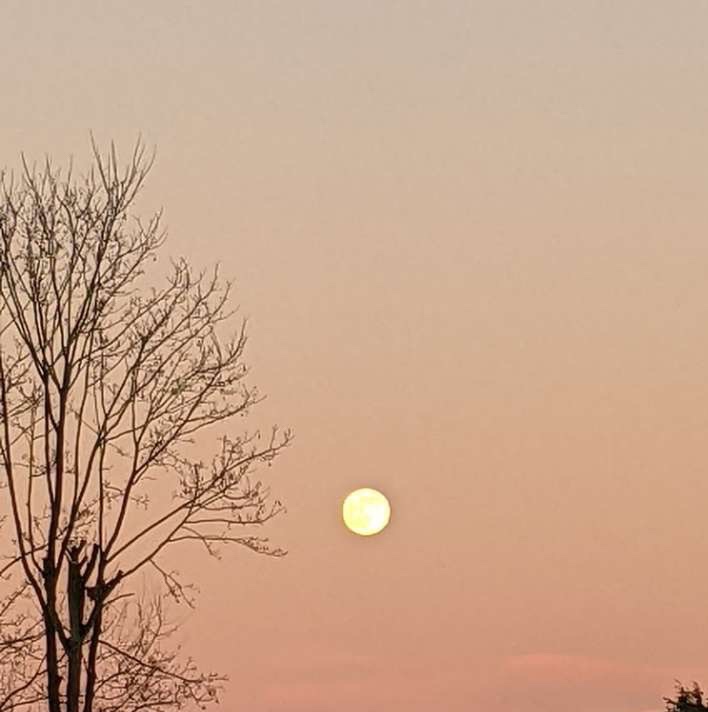 Thank you to my beloved husband for stopping to take this photo of the full moon rising into a glowing sunset. Stunning.